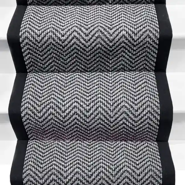 Enhance your staircase with this elegant black and white chevron stair runner, designed for both style and safety. Crafted from durable woven fibers, it offers a soft, non-slip surface that reduces noise and wear. Ideal for modern homes in the UAE, this runner brings a chic, timeless touch to your stairs.