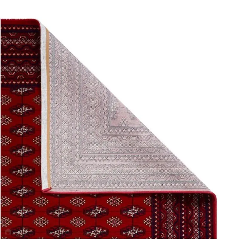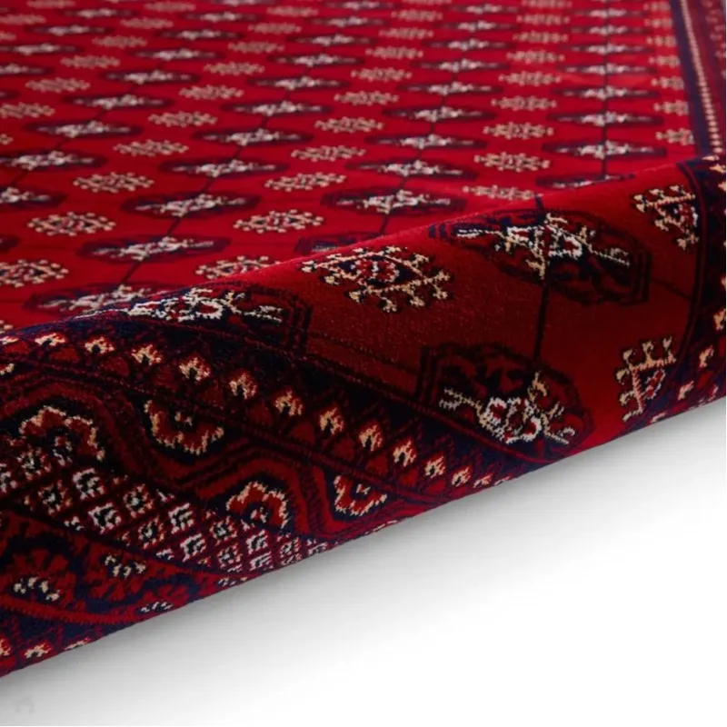 This elegant Persian geometric area rugs features a deep red base with intricate black and white motifs, creating a bold yet refined look. Perfect for living rooms or offices, its rich color palette and soft texture bring warmth, luxury, and timeless Persian craftsmanship to any modern UAE home.