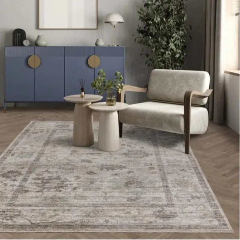 This luxury Persian vintage area rugs features a soft blend of gray and beige tones with a beautifully weathered finish. Designed to complement modern interiors, its subtle Persian motifs and plush texture bring timeless elegance, comfort, and refined style to any room in your UAE home.