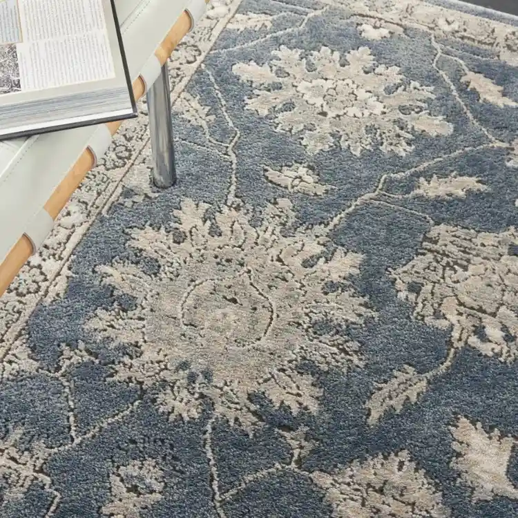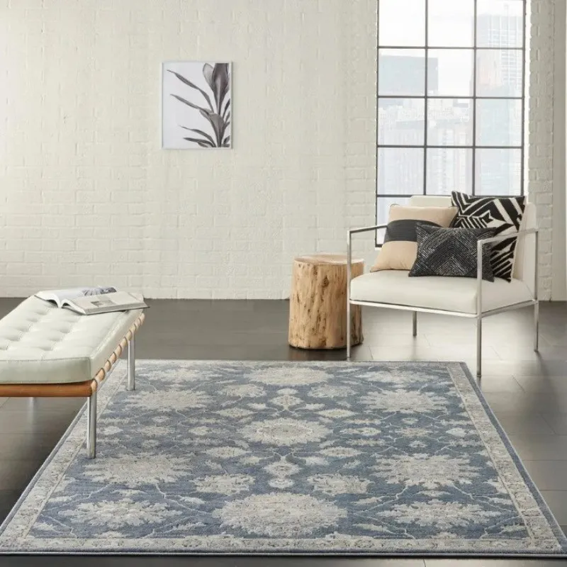 This modern Persian floral area rugs features elegant patterns in soft blue and ivory tones, bringing a calm and sophisticated charm to any room. Its intricate design and plush texture make it perfect for living rooms or bedrooms, adding timeless Persian artistry to contemporary UAE interiors.