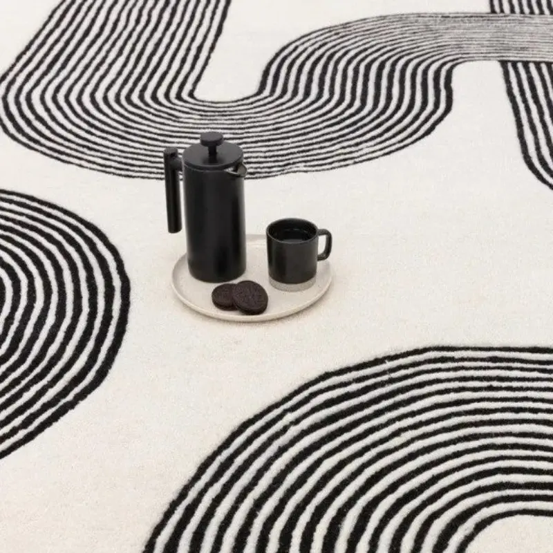 The Mono Curve Textured Modern Rugs brings striking visual rhythm to your space with its bold black and white curved line design. Featuring a soft carved hi-low rib texture, it combines modern artistry and plush comfort, making it a statement piece for any contemporary home.