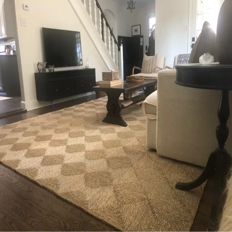 This handwoven natural jute rugs brings a warm and earthy charm to any room. Designed with a subtle diamond pattern, it blends beautifully with modern and classic interiors. Durable, eco-friendly, and stylish, it’s perfect for adding comfort and texture to your living room or bedroom.