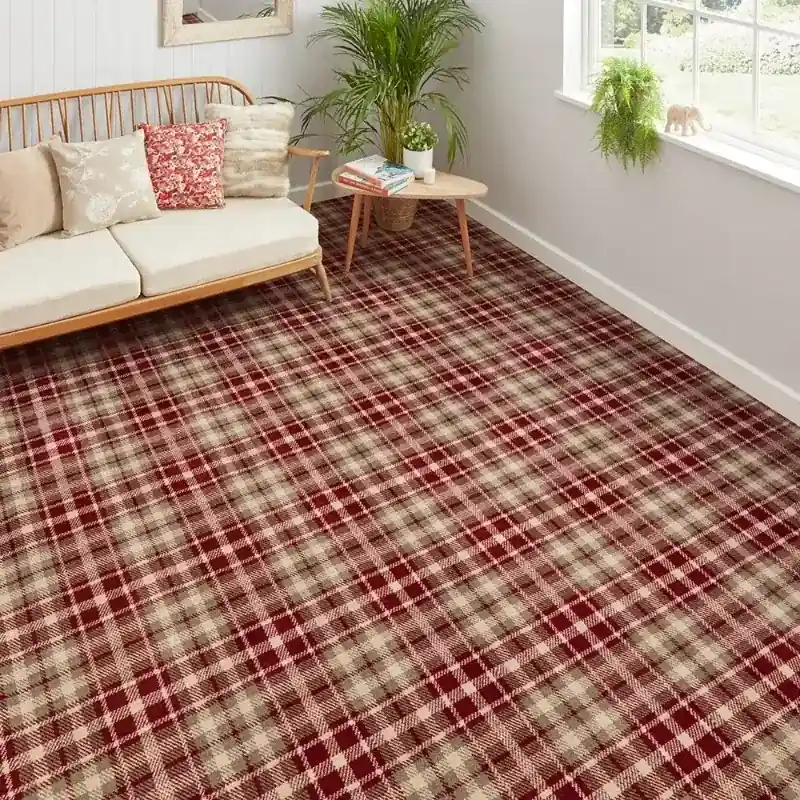 Transform your living room or office with this stylish plaid red pattern carpet. The intricate blend of red, beige, and cream creates a timeless, cozy atmosphere perfect for any interior. Whether you’re looking to add warmth or a touch of elegance to your space, this carpet provides a soft, durable, and easy-to-maintain flooring solution.