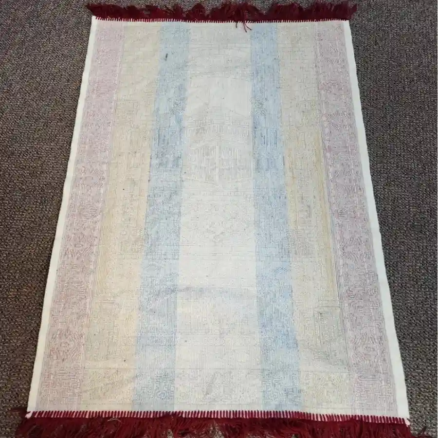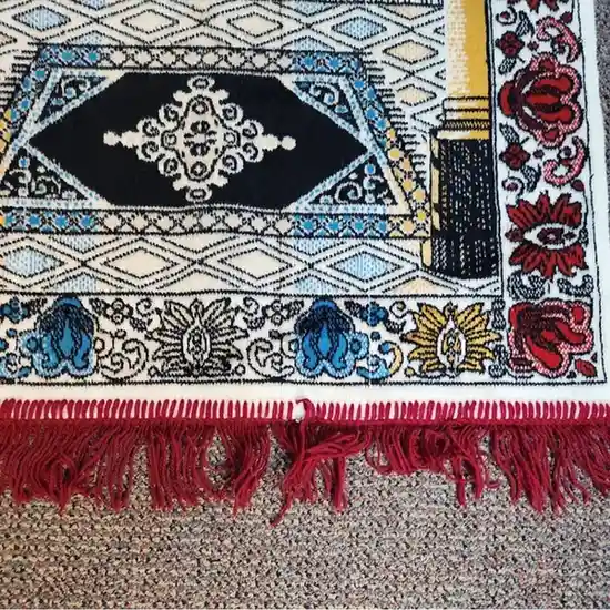 This prayer mat features an elegant red arch pattern with detailed Islamic design, offering a soft and supportive surface that enhances comfort and focus during daily salah, suitable for home, mosque, or gifting use.